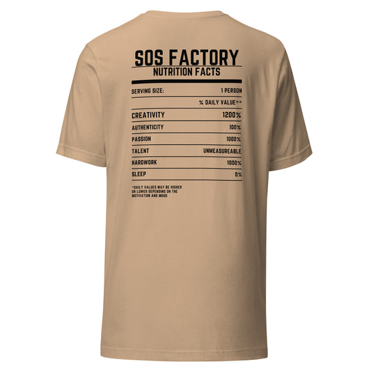 Sos Factory “S” Unisex T-shirt - Nutrition Facts